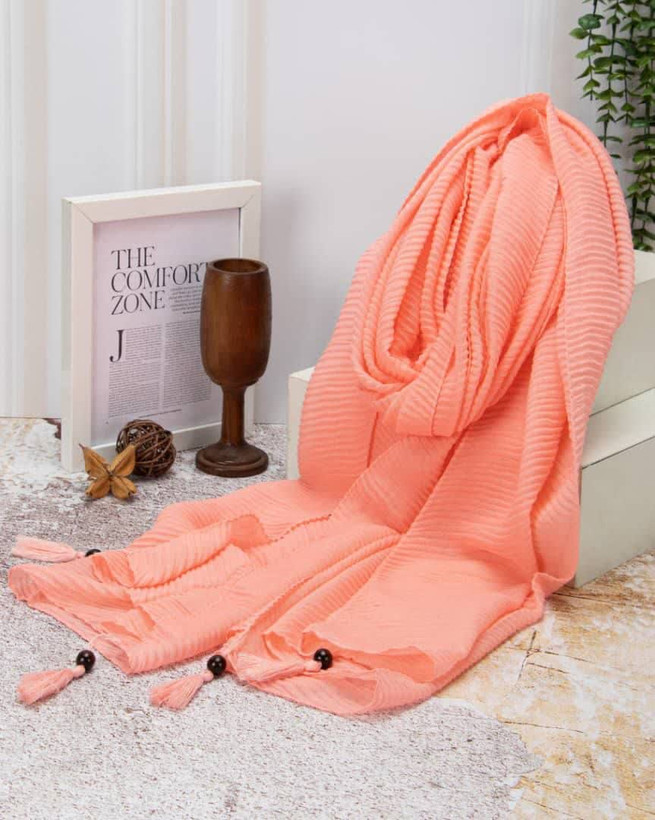پلیسه بودن پارچه کمک میکنه شال روی سر ایستایی خوبی داشته باشه و نیاز به اتو نداشته باشه.
