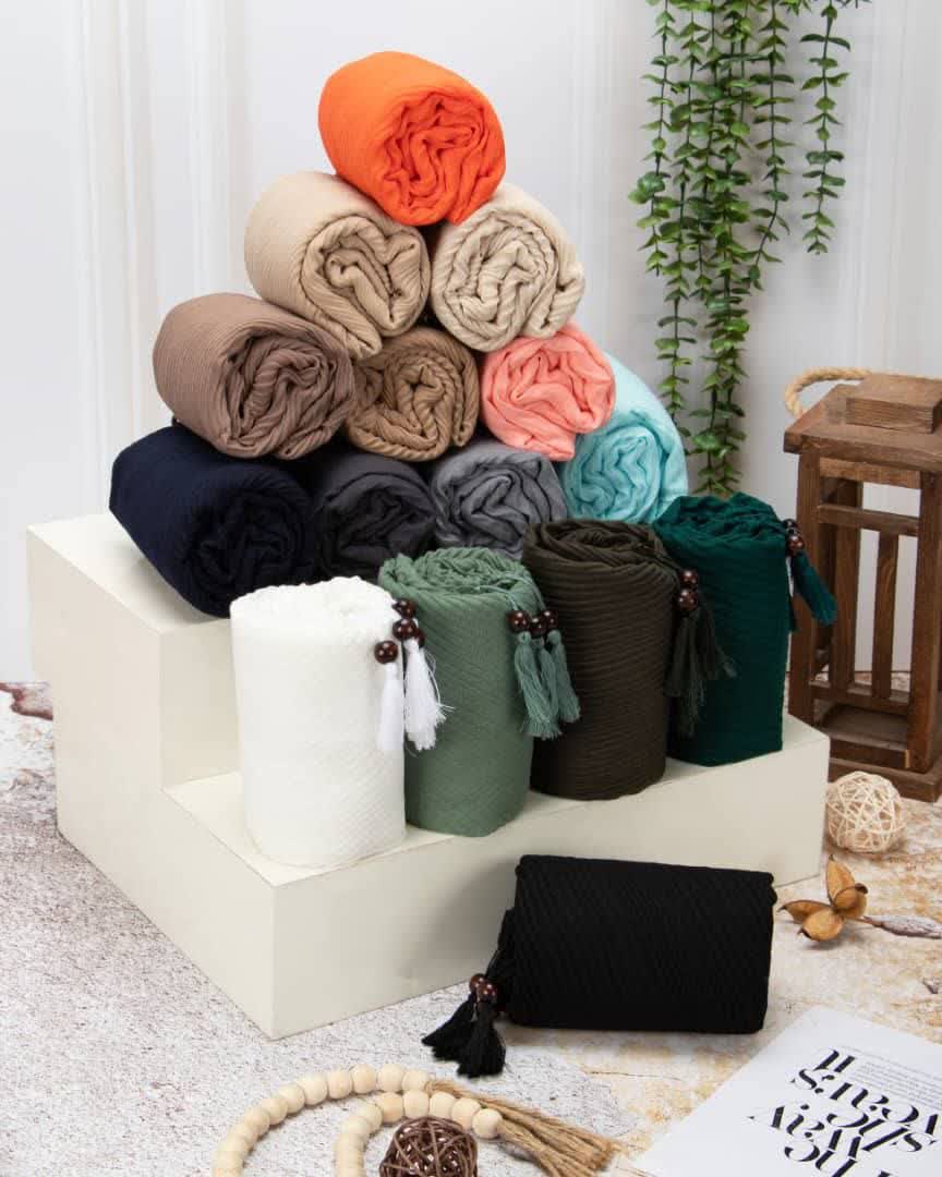 جنس نخ خنک و سبک این شال باعث میشود در تمام فصول سال کاربردی باشد و پلیسه بودن پارچه نیز جلوهای شیک، بهروز و همیشه ترند ایجاد میکند.