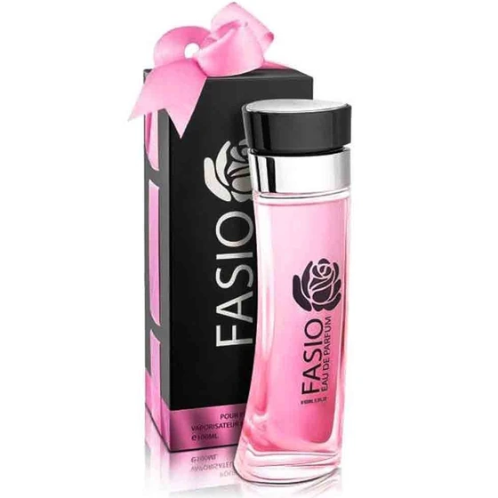 بطری فسیو بسیار شیک و زنانه ساخته شده است. این شیشهی کشیده و بلند با رنگ صورتی و زنانهاش برای هماهنگشدن با لباسهای بانوان بسیار مناسب است. روی شیشه، نام Fasio و یک طرح گل رز را مشاهده میکنید. مایع صورتیرنگ درون بطری از روی شیشهی شفاف آن بهخوبی دیده میشود. در بطری به رنگ سیاه است و بهخوبی روی گردن نقرهای رنگ عطر سوار شده است. روی کارتن فاسیو یک روبان پارچهای به شکل پاپیون کار شده که زیبایی آن را دوچندان کرده است.