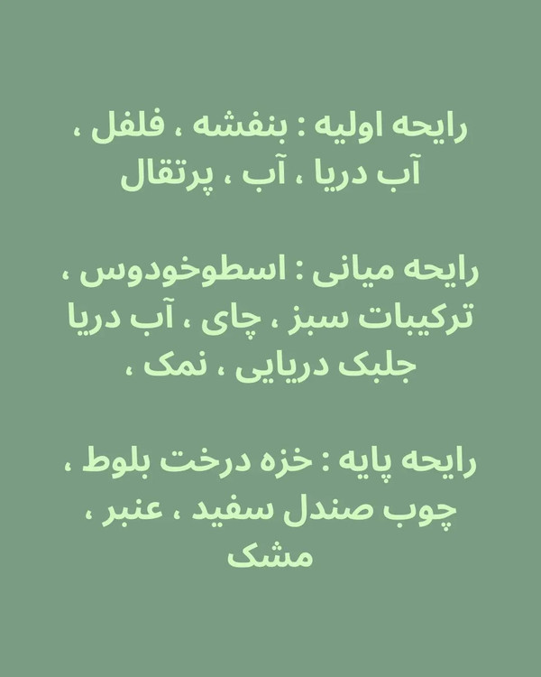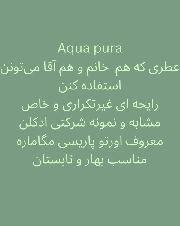 عطری با رایحه غیرتکراری برای خانم و آقا که مناسب فصل بهار و تابستان هست مشابه و نمونه شرکتی ادکلن معروف اورتو پاریسی مگاماره . . . مشخصات ۷۰ میل مناسب خانم و آقا خنک و ملایم برای بهار وتابستان تولید شده توسط شرکت اماراتی فرگرانس .