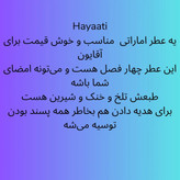 یه عطر متفاوت اماراتی "حیاتی" این عطر میتونه امضای شما باشه چون عطر چهار فصل هست برای هدیه دادن هم مناسب هست با توجه به مناسبی که داره . مشخصات ۱۰۰میل مناسب آقایان چهارفصل طبع تلخ و خنک و شیرین تولید شده توسط شرکت اماراتی فرگرانس .
